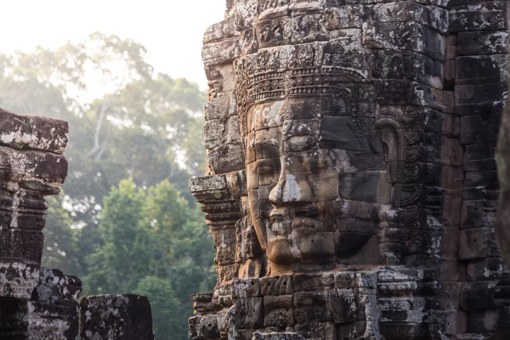 バイヨン寺院(Bayon): アンコール・トムの中心に位置し、50を超える塔に約200体もの巨大な尊顔が彫刻されていることで有名です。見る角度によって表情が変わる不思議な魅力があり、その神秘的な微笑みは「クメールの微笑み」として世界中に知られています。