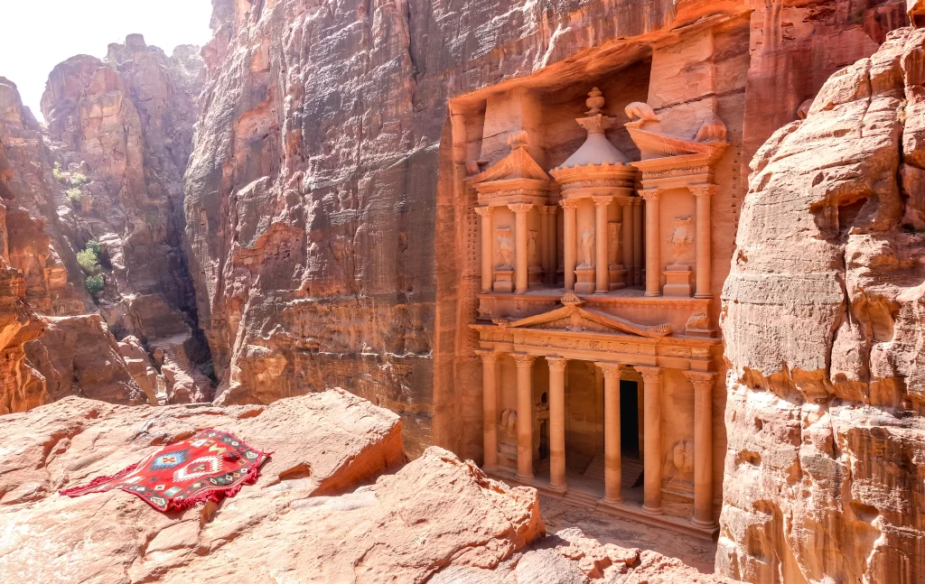 ヨルダンの南部に位置するペトラは、紀元前6世紀頃から栄えた古代都市です。周囲を切り立った岩山に囲まれ、外部からはその存在を知られにくい、まさに「隠された都市」でした。