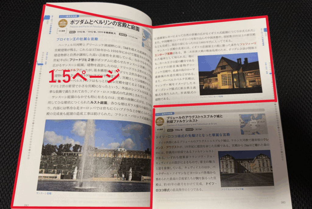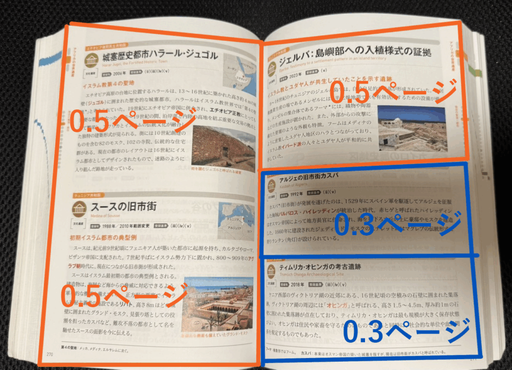 例えば自然遺産を優先して覚えていく中でも1ページ以上、かつヨーロッパを優先するなど…