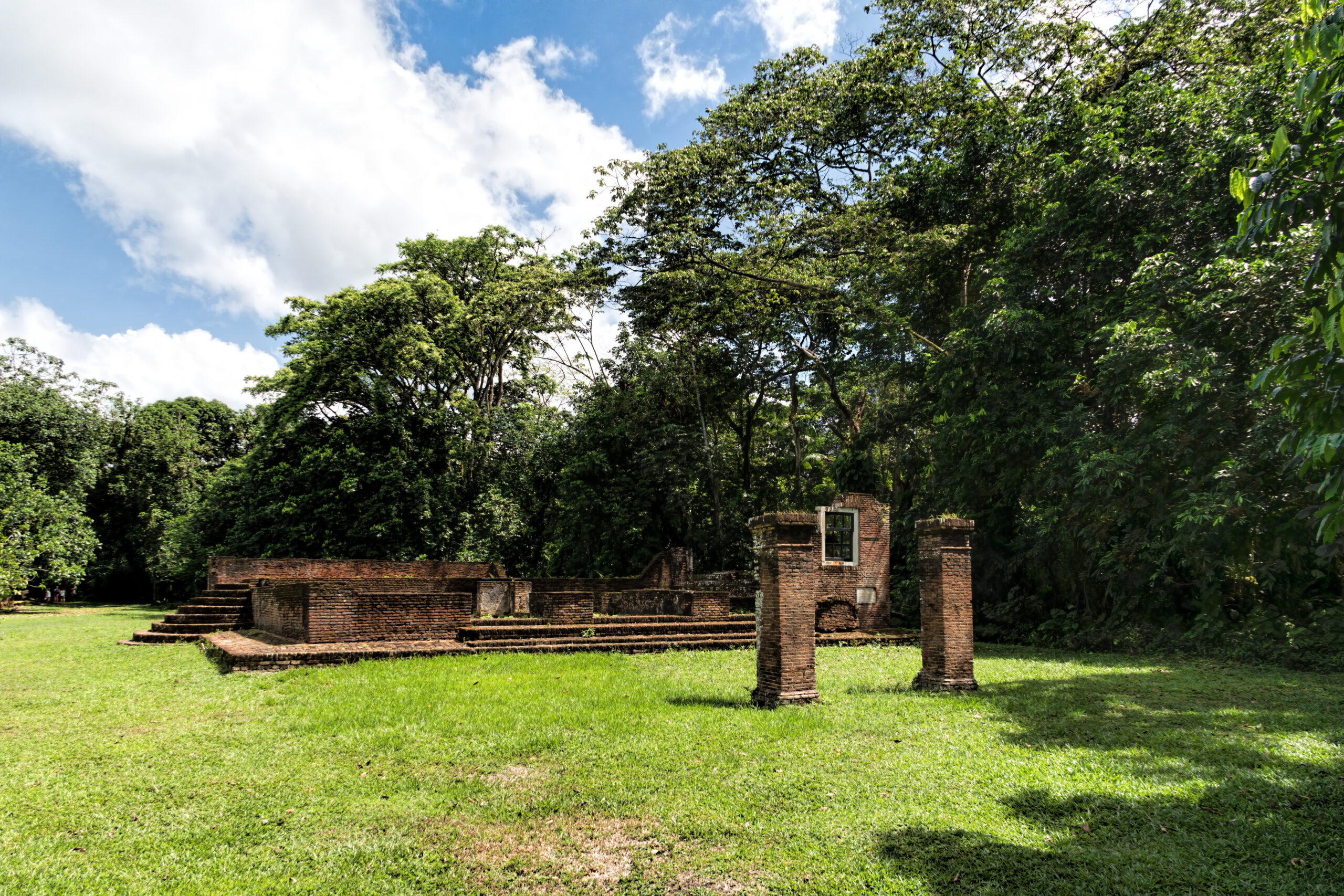 トロピカルな森林に囲まれた遺跡であり、スリナムの豊かな生態系を感じられる。